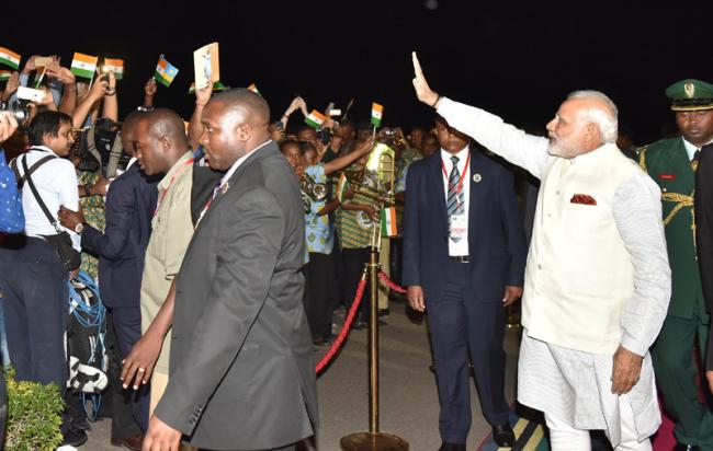 Modi tweeted: "Landed to a lively welcome in Tanzania."