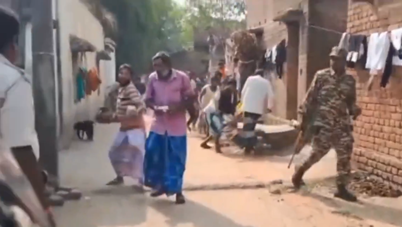 A mob attacked central forces in the Birbhum district of West Bengal. Photo: Screen-grab