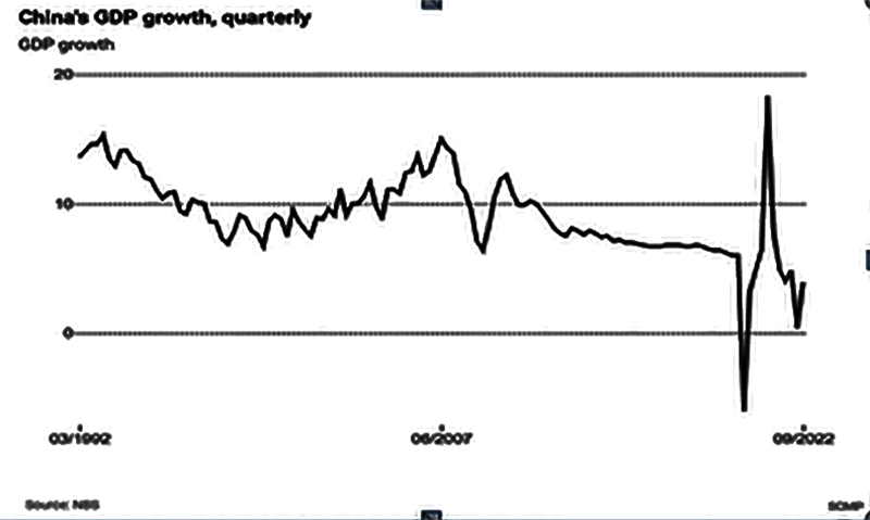 A cursory look at the graph above will tell that leaving the covid years of 2020 and 2021, China’s quarterly GDP growth has been witnessing a consistent decline since the global financial meltdown in 2008.