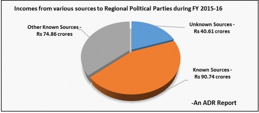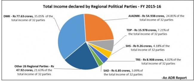 New Delhi, Oct 28 (IBNS): The Dravida Munnetra Kazhagam (DMK) and the All India Anna Dravida Munnetra Kazhagam (AIADMK) top the list of regional political parties with the highest income for the financial year 2015-2016.