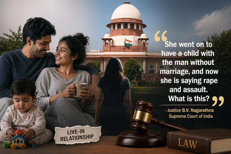 Justice B. V. Nagarathna questioned how a consensual relationship could later translate into allegations of sexual assault, underlining the distinction between marriage and live-in arrangements.