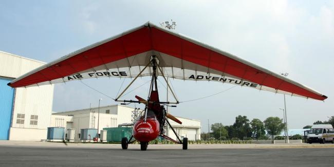 The crew for the microlight comprised of Wg Cdr VS Shokeen and Sgt Sunil whereas the two PHGs were piloted by Sqn Ldr WS Singh, Sqn Ldr Ajmer Singh, Sgt ML Yadav, Sgt Ram Mehar and Cpl Dobhal.