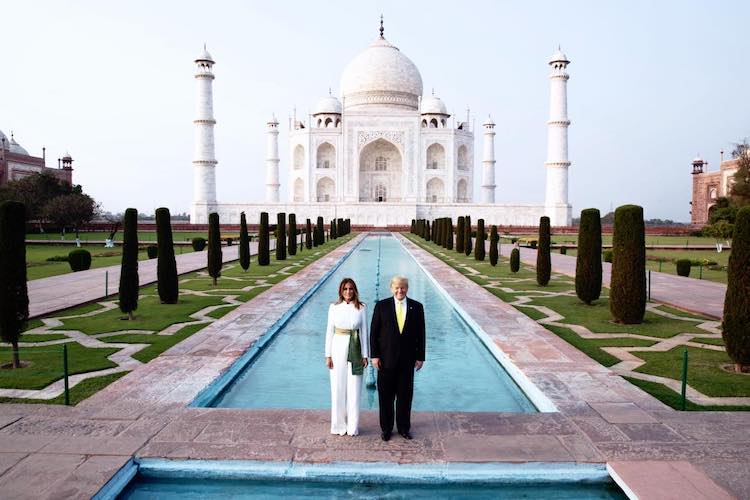 Ending his Ahmedabad spectacle Trump accompanied with his wife arrived at Agra for perhaps the most exciting part of their visit and took a leisurely trip of the "majestic Taj Mahal" in the evening.