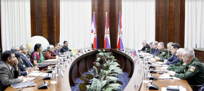 New Delhi, Apr 4 (IBNS): India's Defence Minister, Nirmala Sitharaman, met Minister of Industry and Trade of the Russian Federation, Denis Manturov, and Russian Defence Minister, General Sergey Shoygu, according to a release by the Ministry of Defence on Wednesday.