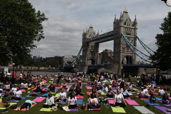 High Commission of India in the UK tweeted: "#IDY2016 @PottersFieldsPa yoga enthusiasts with @TowerBridge @LondonGherkin @TheShardLondon in the background."