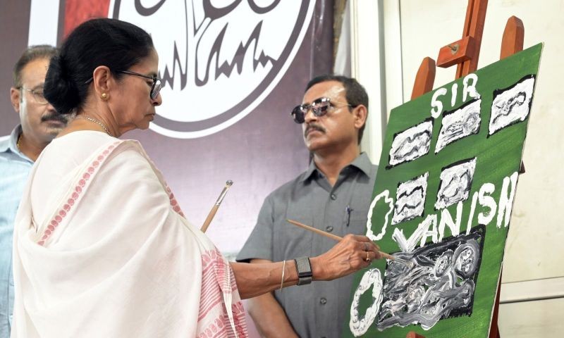 Mamata Banerjee's artistic protest against SIR at her dharna site. Photo: Mamata Banerjee/Facebook