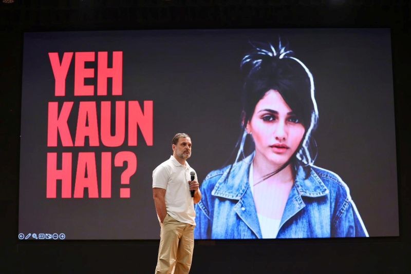 Rahul Gandhi showing photograph of the Brazilian woman in question. Photo: Rahul Gandhi/Facebook