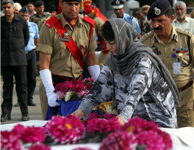 Kashmir CM Mehbooba Mufti pays floral tributes to slain Yatris