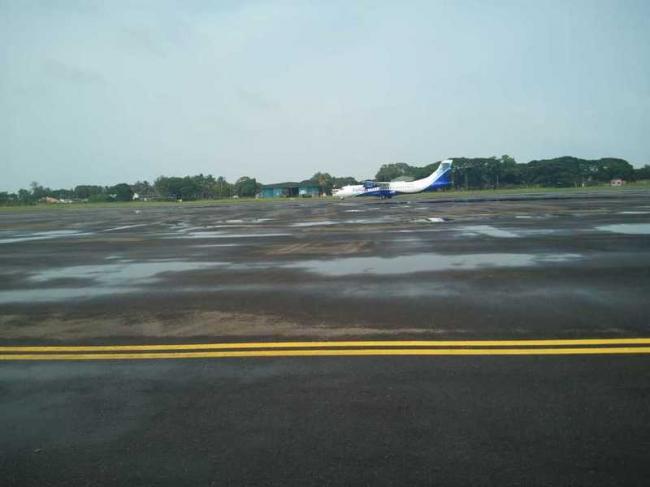 The first flight- an alliance Air ATR Plane- landed at the INS Garuda naval air station in the morning.