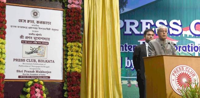 Earlier in the day, President Pranab Mukherjee addressed a gathering at the bicentenary celebrations of Bengali Newspaper, organised by the Press Club of Kolkata, in Kolkata, West Bengal.