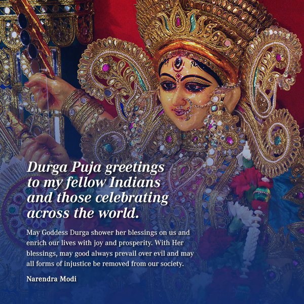 "Durga Puja greetings to my fellow Indians and those celebrating across the world," the Prime Minister said in a statement.