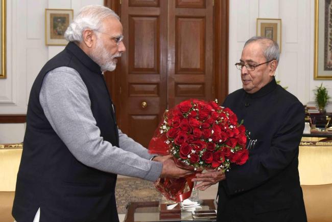 New Delhi, Jan 1 (IBNS): Prime Minister Narendra Modi on Sunday met President Pranab Mukherjee and Vice-President M Hamid Ansari to greet them on new year.