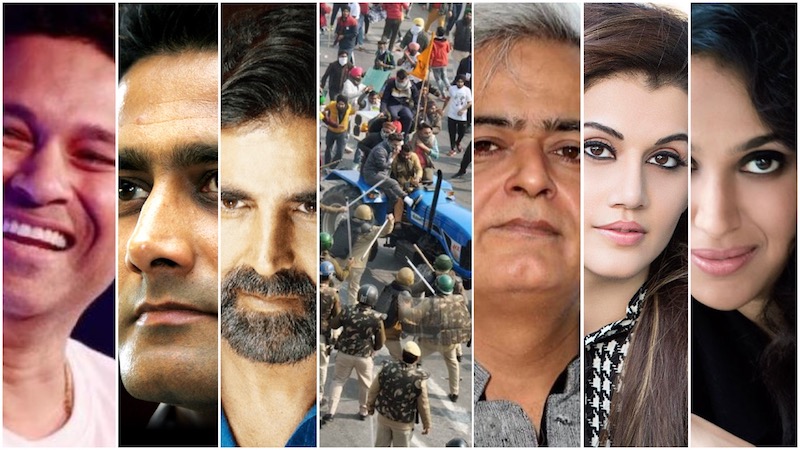 Joining the list of netizens and countering the earlier #IndiaTogether tweets, another group of celebrities, actors and filmmakers like Taapsee Pannu, Sayani Gupta, Richa Chadha, Hansal Mehta, Swara Bhasker and Shibani Dandekar slammed "identical" tweets and asked these celebrities to grow a spine instead.