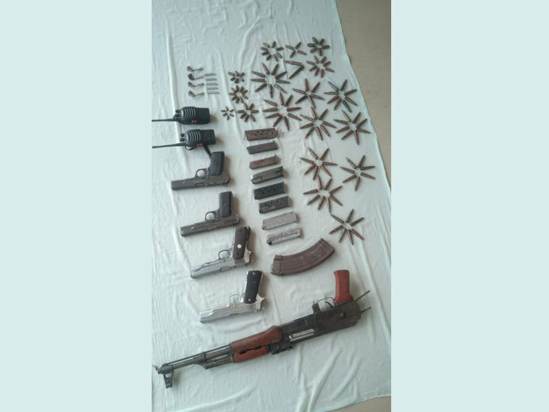 Police recovered one AK series rifle, four pistols, a large number of ammunition, two walkie talkie sets from the area.
