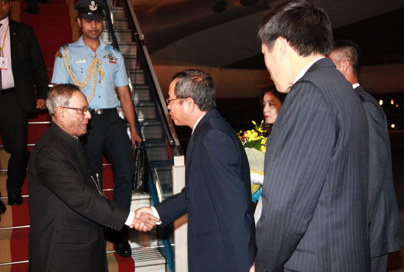 Mukherjee was received by the Council Minister of Vietnam on his arrival at Hanoi International Airport, in Vietnam.