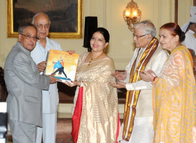 New Delhi, June 8 (IBNS) President Pranab Mukherjee received the first copy of 'Yogikasparsh', a Yoga Manual in Braille written by Nivedita Joshi at a function in Rashtrapati Bhavan in New Delhi on Monday.