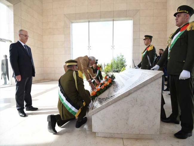 Modi visited and laid a wreath at the mausoleum of the iconic leader of Palestine.