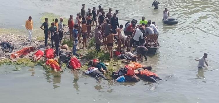 According to reports, a private bus carrying a wedding party plunged into Mej river from a bridge on Kota-Dausa highway in Bundi district of Rajasthan in the morning, leaving 24 passengers, including 11 women and three children, dead and five others critically hurt.