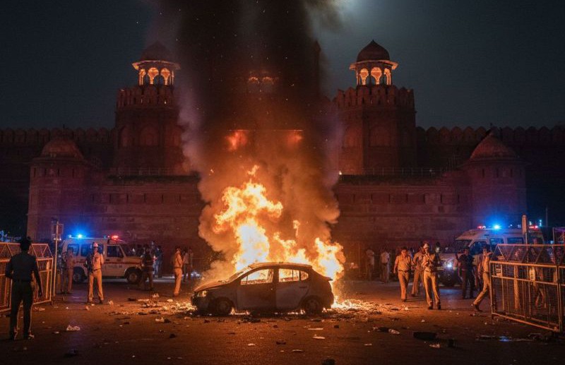 A car explosion occurred in a parked car near Delhi's Red Fort. Photo: Gemini.