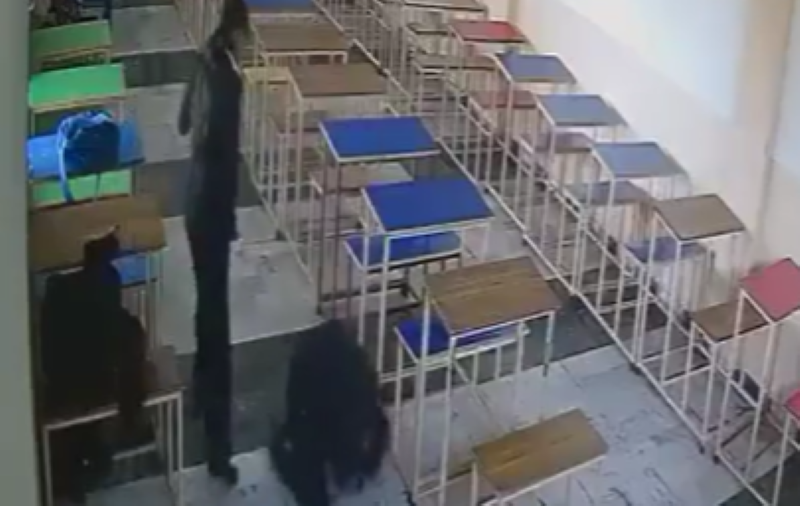 When Raj did not respond to a remark made by Sandeep, she walked away. Raj soon followed her. The footage later shows Raj, Sandeep and another female student walking towards their seats.