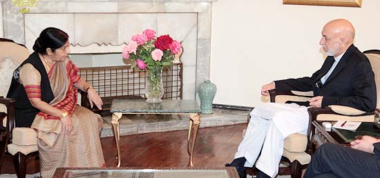 Kabul, Sept 10 (IBNS) External Affairs Minister Sushma Swaraj on Wednesday met Afghanistan President Hamid Karzai here as both the leaders discussed ways to significantly step up activities under Strategic Partnership Agreement.
