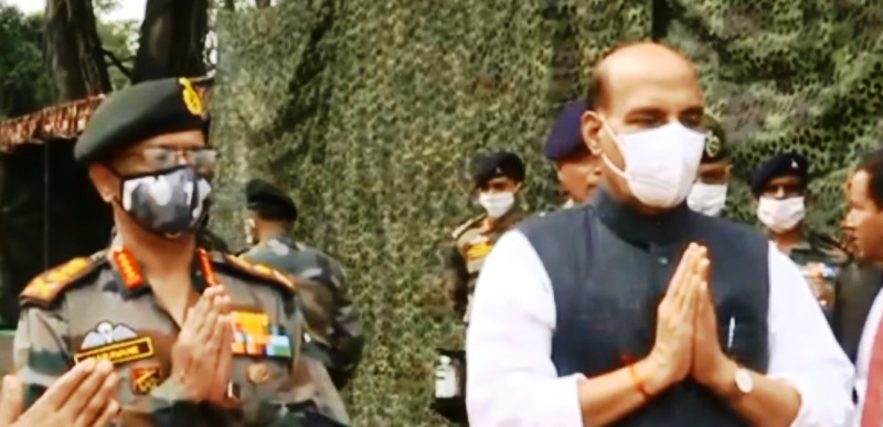 The Defence Minister was accompanied by Army chief General Manoj Mukund Naravane during the "Shastra Puja" at the Sukna War Memorial in Darjeeling.