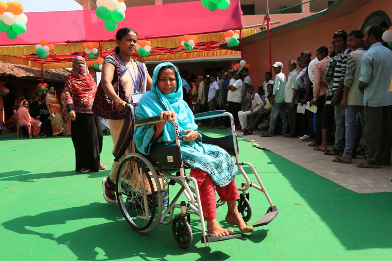 KHUNTI, MAY 6 (UNI):-Voters standing in queue for tgheir turn to cast their vote during the 5th phase of Lok Shabha Election-2019 in Khunti on Monday.