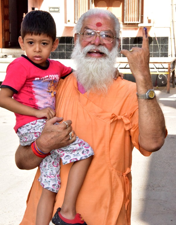 BIKANER, MAY 6 (UNI):-A Voter showing his inked finger after casting vote at a polling station during the fifth phase of the 2019 Lok Sabha elections, at Bikaner on Monday.
