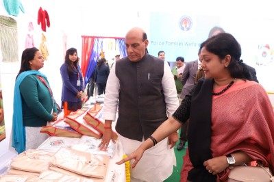 The Union Home Minister, Rajnath Singh addressing the gathering after launching of the book “Mere Sapno Ka Bharat”, a collection of best interviews of the former Prime Minister, Atal Bihari Vajpayee by the former Member of Parliament, Tarun Vijay, in New Delhi on February 08, 2018.