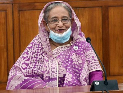 DHAKA, June 12, 2020 (Xinhua) -- Bangladeshi Prime Minister Sheikh Hasina speaks in parliament in Dhaka, Bangladesh on June 11, 2020. The Bangladeshi government has unveiled a record 5.68-trillion-taka (about 66.9 billion U.S. dollars) national budget for the 2020-21 fiscal year starting from July.