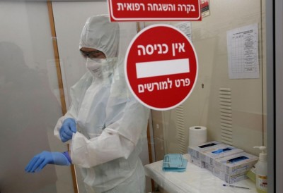 TEL AVIV, June 19, 2020 (Xinhua) -- An Israeli medical worker checks temperature passengers who arrive from the United States at Ben Gurion International Airport near central Israeli city of Tel Aviv amid the COVID-19 pandemic on June 18, 2020.