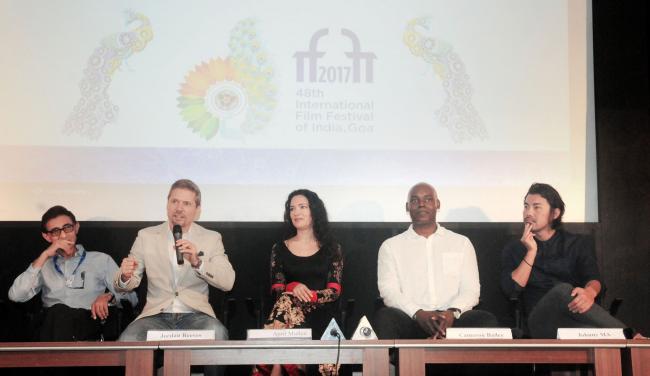 The Artistic Director Cameron Bailey along with the Cast and crew of the ‘Old Stone’, at the Country of Focus: Canada Press Conference, during the 48th International Film Festival of India (IFFI-2017), in Panaji, Goa on November 21, 2017.