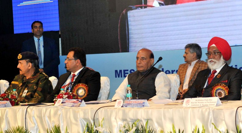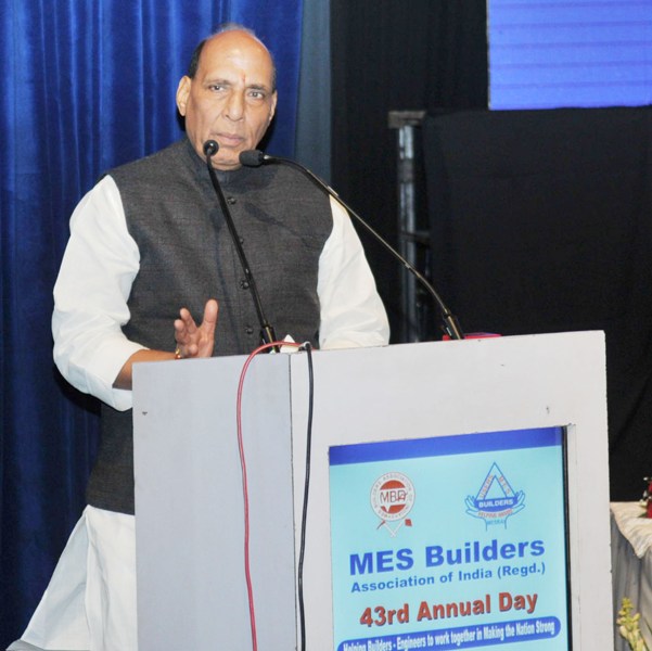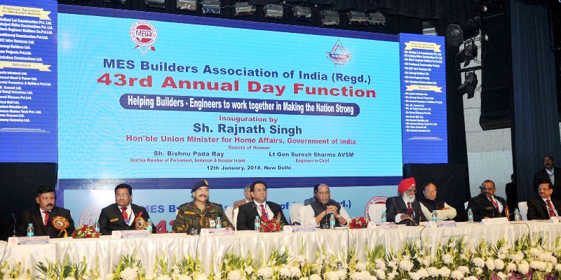 The Union Home Minister, Rajnath Singh addressing at the inauguration of the 43rd Annual Day function of MES Builders Association of India, in New Delhi on January 12, 2018.