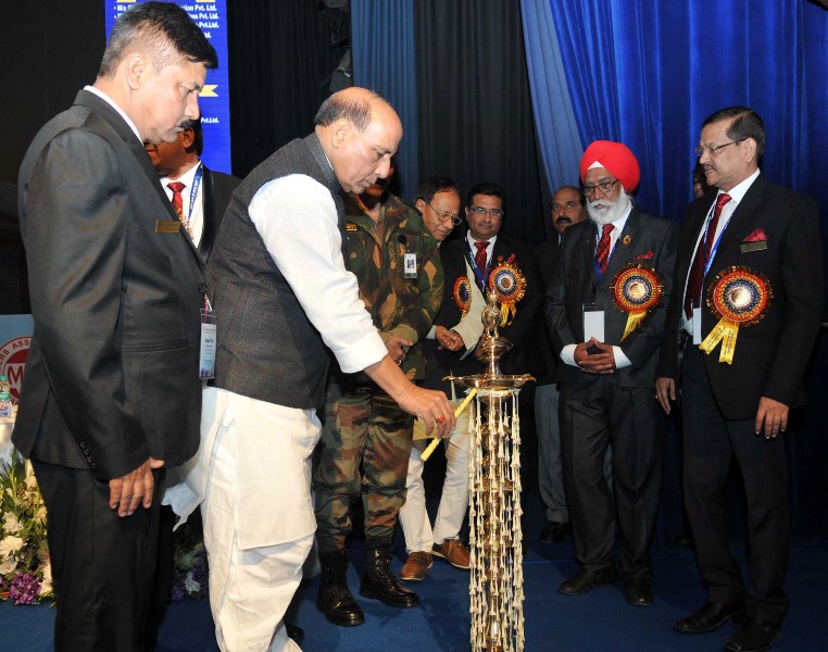 The Union Home Minister, Rajnath Singh lighting the lamp to inaugurate the 43rd Annual Day function of MES Builders Association of India, in New Delhi on January 12, 2018