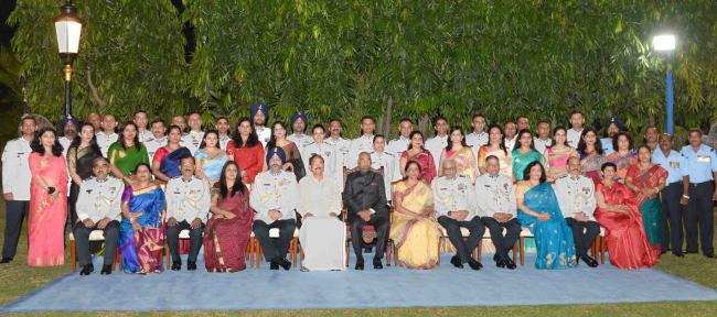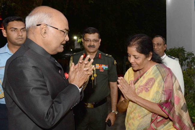 The President, Ram Nath Kovind being received by the Union Minister for Defence, Nirmala Sitharaman, at the ‘At Home’ hosted by the Chief of the Air Staff, Air Chief Marshal B.S. Dhanoa, on the occasion of 85th Anniversary of Indian Air Force, at Air House, in New Delhi on October 08, 2017.