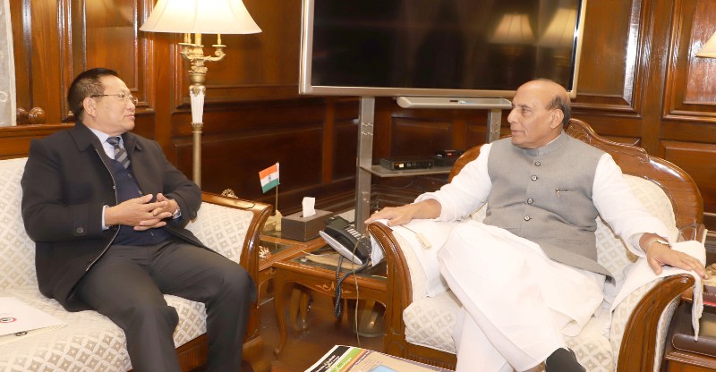 The Chief Minister of Nagaland, T.R. Zeliang calling on the Union Home Minister, Rajnath Singh, in New Delhi on January 10, 2018.