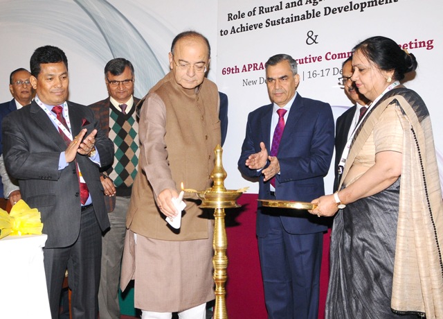 The Union Minister for Finance and Corporate Affairs, Arun Jaitley at the International Forum on Role of Rural and Agricultural Finance to Achieve Sustainable Development Goals and 69th APRACA Executive Committee Meeting, hosted by NABARD, in New Delhi on December 16, 2017.