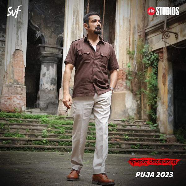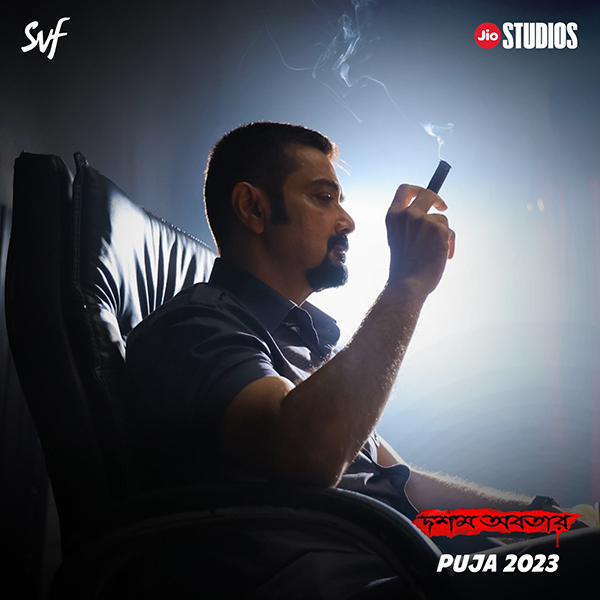 Jio Studios and SVF on Wednesday unveiled the first look of Prosenjit Chatterjee, Jisshu U Sengupta, Anirban Bhattacharya, Jaya Ahsan from Srijit Mukherji’s Durga Puja release, ‘Dawshom Awbotaar’. (Photo courtesy: SVF)