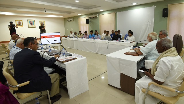 The Prime Minister, Narendra Modi chairing the meeting to review the situation arisen due to Cyclone Ockhi, in Lakshadweep on December 19, 2017.