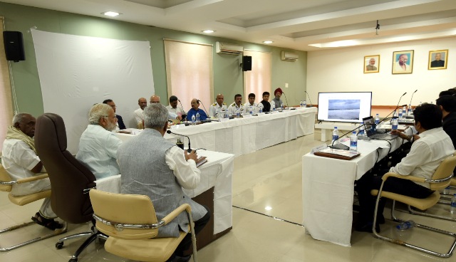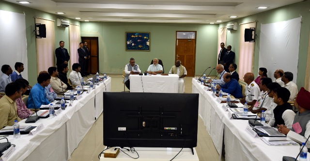 The Prime Minister, Narendra Modi chairing the meeting to review the situation arisen due to Cyclone Ockhi, in Lakshadweep on December 19, 2017