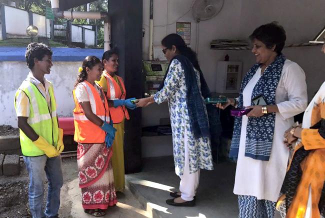 The Union Minister for Defence, Nirmala Sitharaman visiting the Segregated Waste Collection Center, maintained by the Defence Wives Welfare Association, in Port Blair on October 19, 2017.
