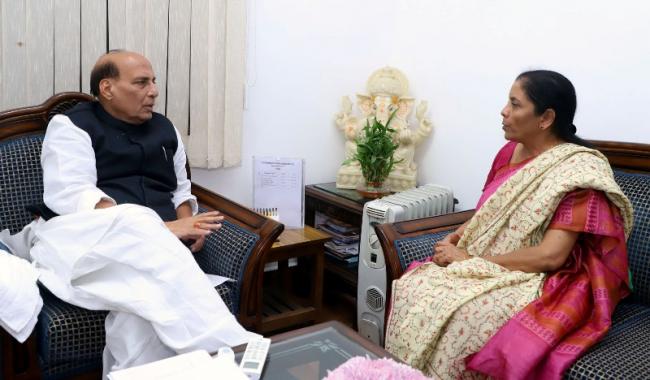 The Union Minister for Defence, Nirmala Sitharaman calling on the Union Home Minister, Rajnath Singh, in New Delhi on December 08, 2017.
