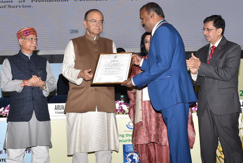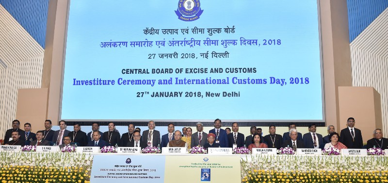 The Union Minister for Finance and Corporate Affairs, Arun Jaitley at the Investiture Ceremony and International Customs Day 2018, in New Delhi on January 27, 2018. The Minister of State for Finance, Shiv Pratap Shukla is also seen.