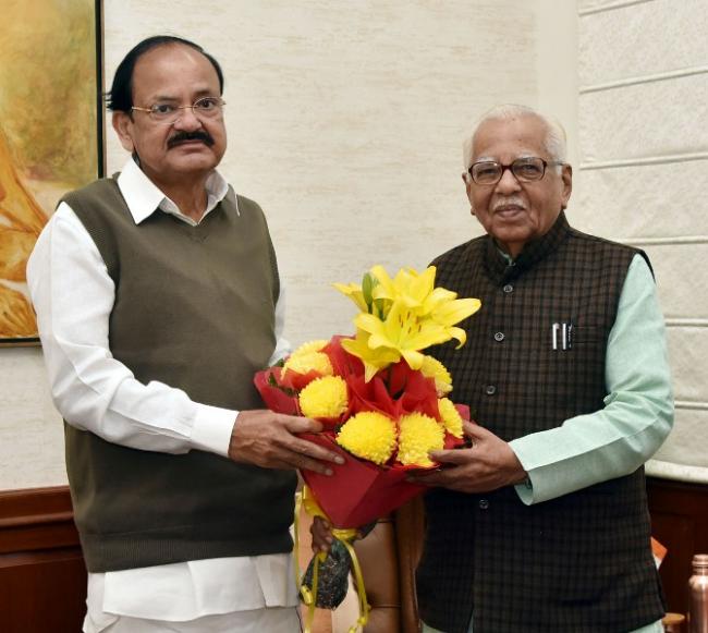 The Governor of Uttar Pradesh, Ram Naik calling on the Vice President, M. Venkaiah Naidu, in New Delhi on November 29, 2017.