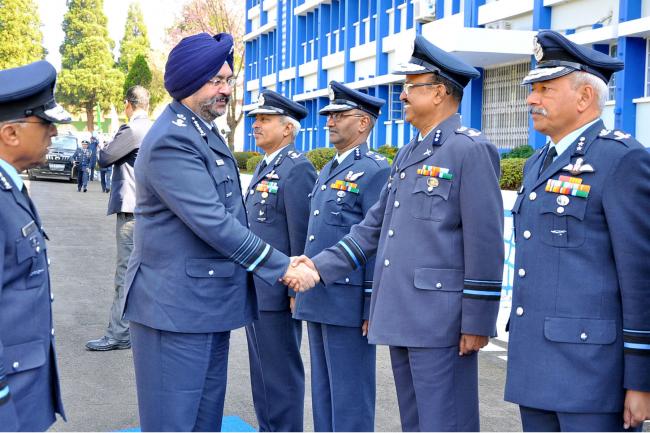 The Chief of the Air Staff, Air Chief Marshal B.S. Dhanoa being introduced to the Principal Staff Officers of HQ Eastern Air Command, at Shillong on November 21, 2017.