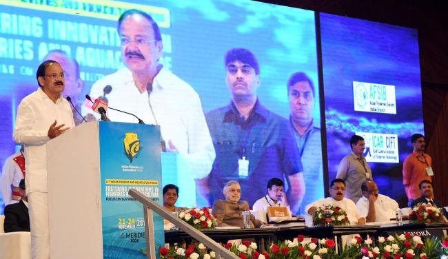 The Vice President, M. Venkaiah Naidu addressing the 11th Indian Fisheries and Aquaculture Forum, in Kochi, Kerala on November 21, 2017.