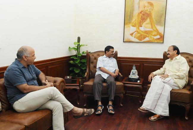The Chief Minister of Delhi,Arvind Kejriwal calling on the Vice President,M.Venkaiah Naidu, in New Delhi on September 02, 2017.The Deputy Chief Minister of Delhi,Manish Sisodia is also seen.