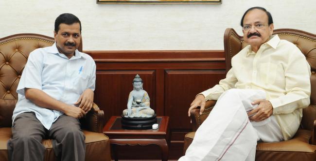 The Chief Minister of Delhi,Arvind Kejriwal calling on the Vice President,M.Venkaiah Naidu, in New Delhi on September 02, 2017.