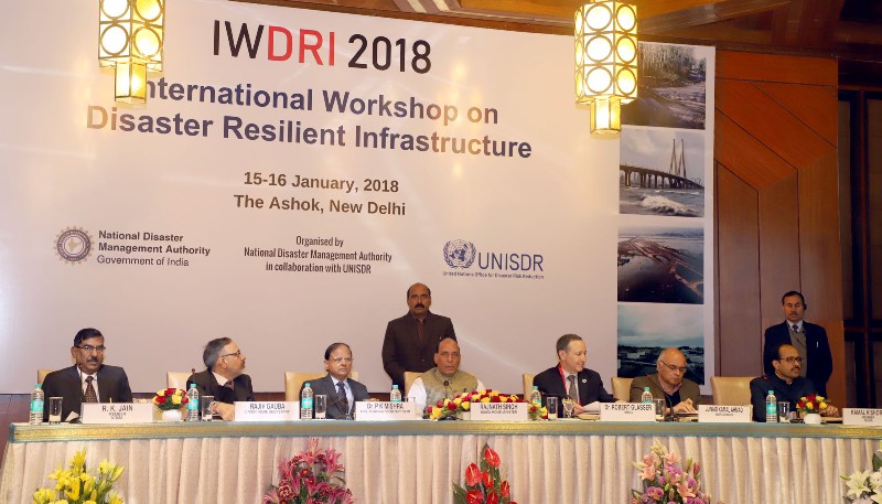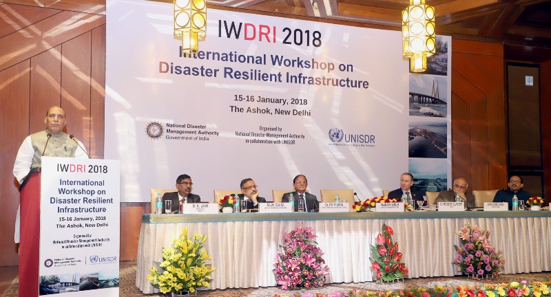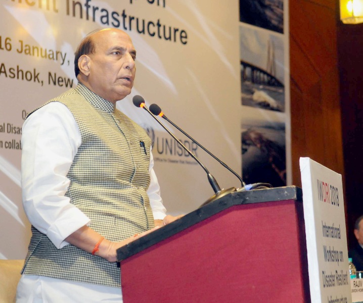 The Union Home Minister, Rajnath Singh addressing the inaugural session of the International Workshop on Disaster Resilient Infrastructure (IWDRI), in New Delhi on January 15, 2018.