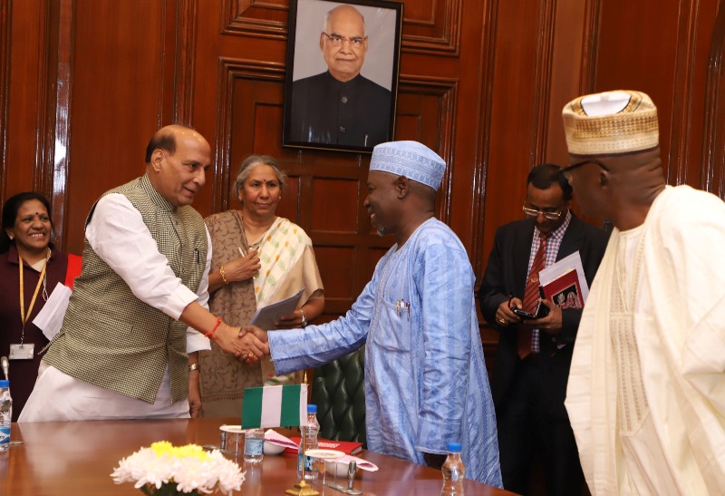 The Union Home Minister, Rajnath Singh greeting Suleiman Z Hassan, MOS Nigeria, in New Delhi on January 15, 2018.